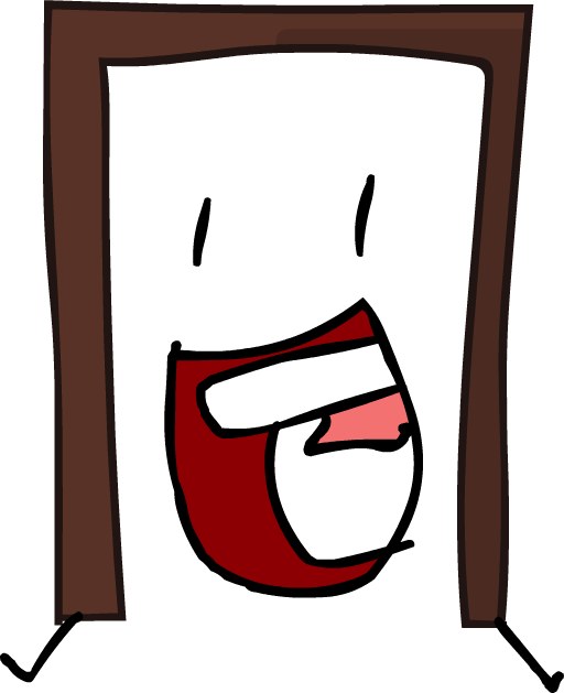 Doorframe can be very loud and expressive, and he also can get excited easily. He tends to notice if there's a new guy first, such as Cane's Cup and Animatic. Doorframe is apologetic, but a bit careless; such as when he forgot to show up on the elimination screen at the end of the It Took Four Weeks To Rename This in which he was punished by Eucerin. Doorframe is very well-meaning and friendly. This can be seen in both M Is For Magic and Caffeination Day where he wanted the recovery of Peppermint to be prioritzed, and was still intent on helping the team despite being eliminated. With this, he comes across as passive which leads to him getting pushed around by others (Even though he knows he will die, he doesn't stand up against Peppermint and just does what he says).