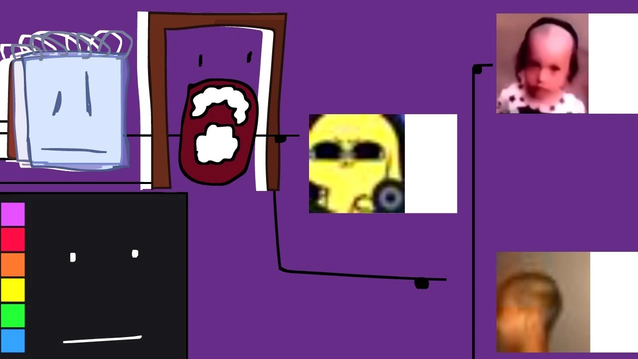 After the elimination, Eucerin starts the next challenge: find "him". Notepad is the first contestant to bring the host somebody, the "person" being a Discord user with an image of Chikn Nuggit as their PFP. Eucerin tells Notepad that this is not the person he is looking for. Tiery is the next person; they bring an image of a toddler with a bad haircut (I found the meme that had the image). Eucerin, upon seeing it, calls Tiery a "f***ing idiot". Doorframe is the last person to bring somebody, the person in question being of a child, also with a bad haircut, facing sideways, who closely resembles Buddy Cut Boy. Eucerin greets them, all while Eyepatch tries to stab him with a knife.