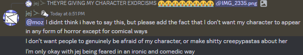 - His creator also asks not to portray his character in any sort of extreme horror, with exceptions of the horror being comical or ironic in nature. [6]