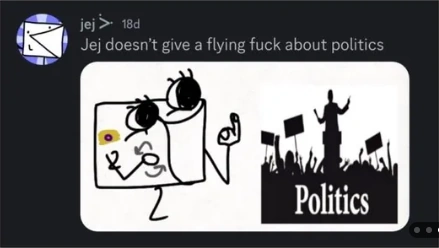 - jej doesn't care about politics. [10]
