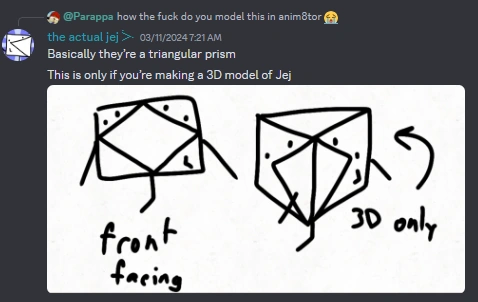 - According to his recommender, when making 3D models, jej is a triangular prism.[3] This was later confirmed in Thank You For The Barbeque.