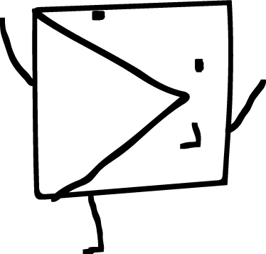 jej is a two-dimensional doodle with a "triangular prism" shaped body (according to Greeny). He has two dots for eyes and a V shaped mouth, resembling the "V:" emoticon. She is drawn without visible hands. Their left leg is oddly entirely within her body, being placed on the bottom left of his face. Its length compared to her right leg differs over time, sometimes appearing shorter and other times being the same length. Despite this seeming disability, They do not struggle to get around.